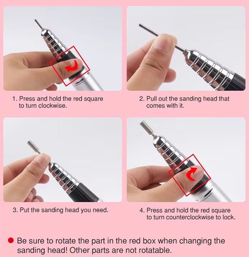 שיטת תפעול החלפת מקדחה לציפורניים חשמלית 35,000 סל"ד חשמלית זו, כלומר תקע ולשלוף, קל ונוח, ניתן להשתמש בהחלפה לאחר השלמתו.