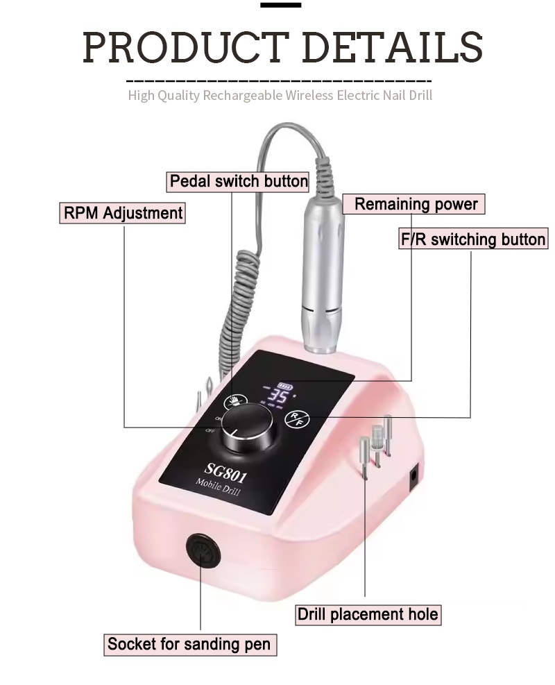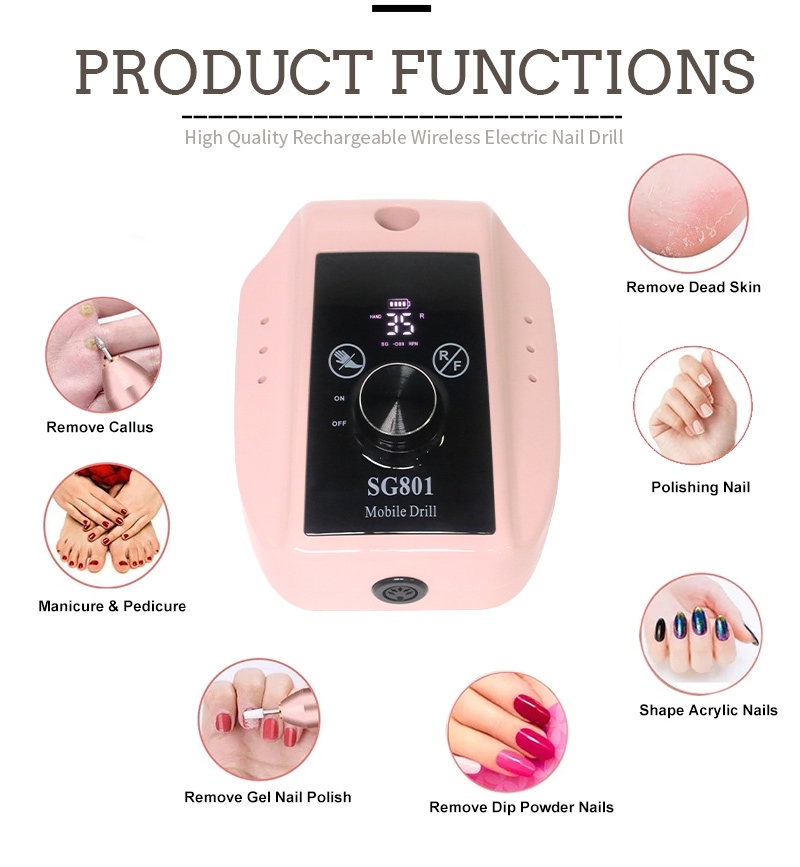 תכונה ויישום של מקדחה חשמלית ניידת ג'ל לציפורניים במהירות 35,000 סל"ד