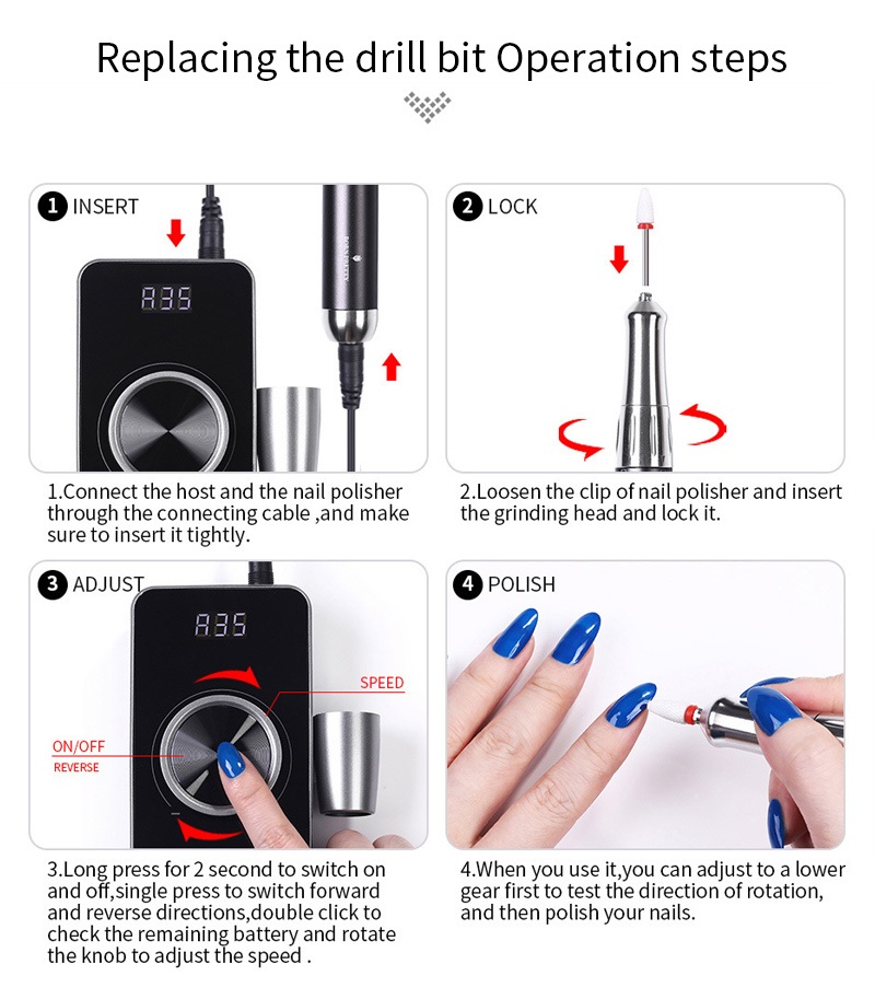 תכונה ויישום של מקדחה חשמלית לציפורניים 35,000 סל"ד