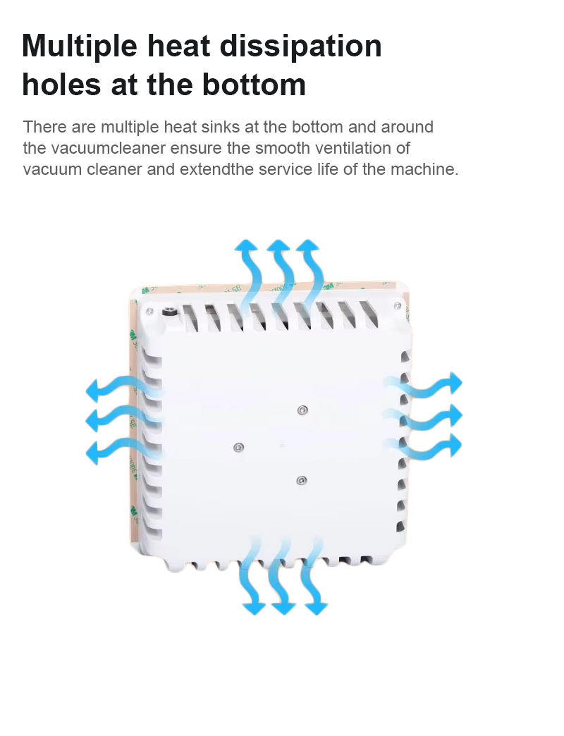 בתחתית המוצר יש חורי קירור לאוורור חלק, והשואב מעוצב עם פתחי קירור מרובים בתחתית ומסביב כדי להבטיח אוורור חלק ולהאריך את חיי המכונה.