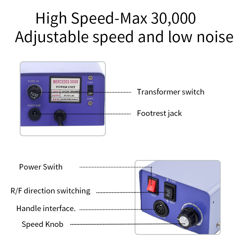 1, מהירות מתכווננת, מנוע חזק, שיוף במהירות גבוהה, כוונון מהירות בזמן אמת עם ידית אינסופית.