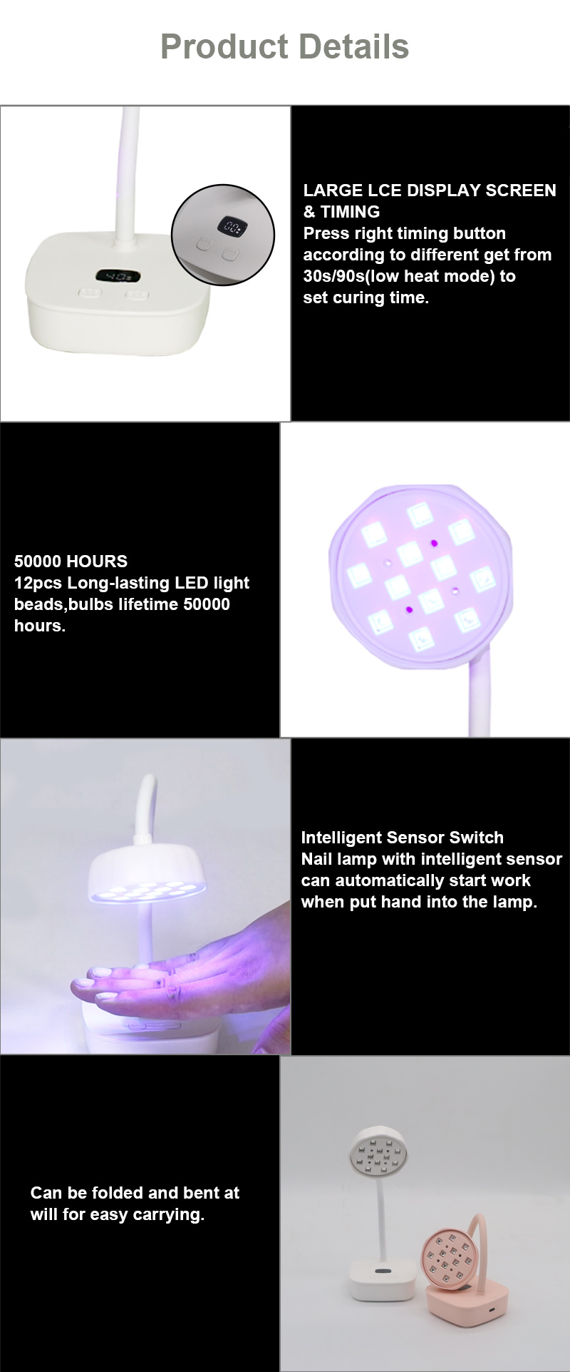 המוצר מבטיח ייבוש אחיד של הדבק ללא התכווצות. מקורות האור הכפולים שלו מספקים חימום עדין למניעת שינוי צבע הידיים ומאמץ בעיניים, מתאים הן לידיים והן לרגליים, ומספק תוצאות ייבוש מהירות להפליא.