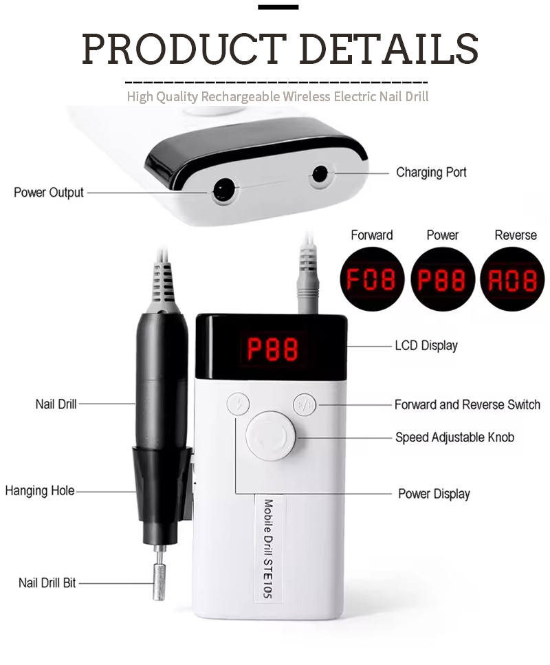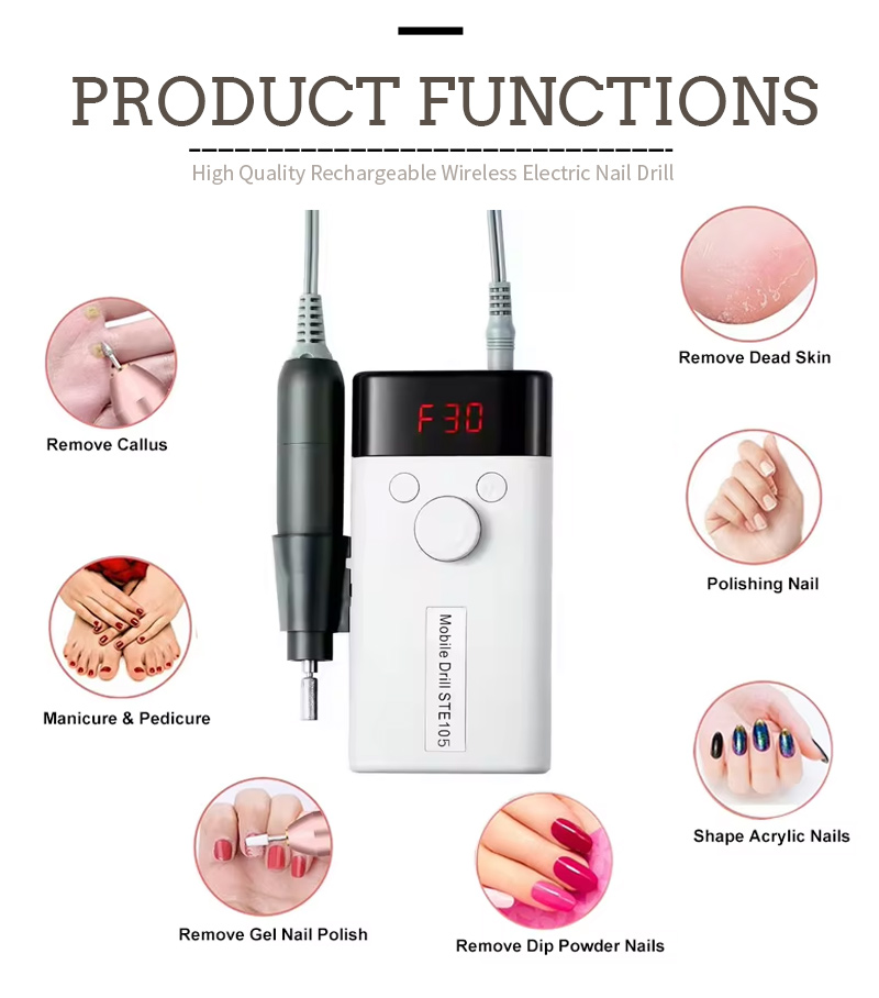 מכונת קידוח ציפורניים אלחוטית נטענת עוצמתית 45w 40000rpm