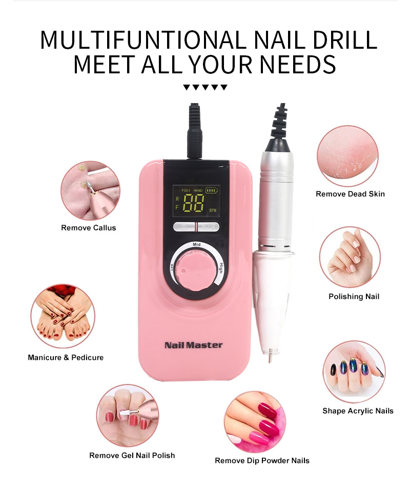 סט מקדחי ציפורניים נייד חשמלי עם מנוע חזק 65w 35000rpm