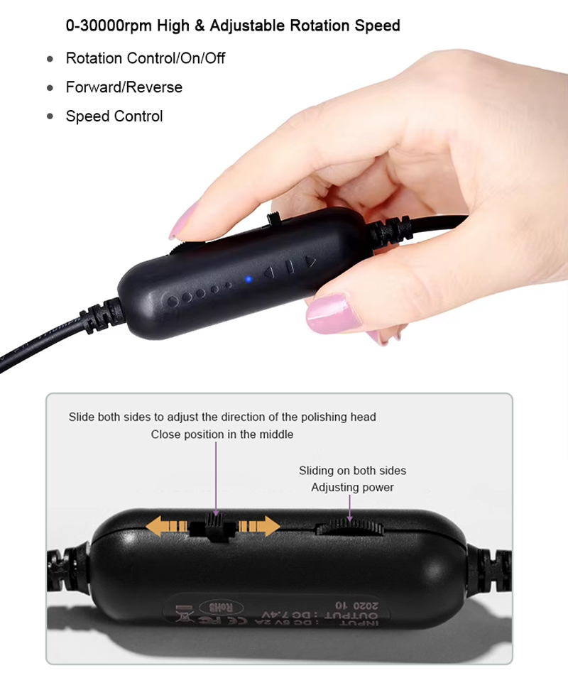 1, מהירות מתכווננת, מנוע חזק, שיוף במהירות גבוהה, כוונון מהירות בזמן אמת עם ידית אינסופית.