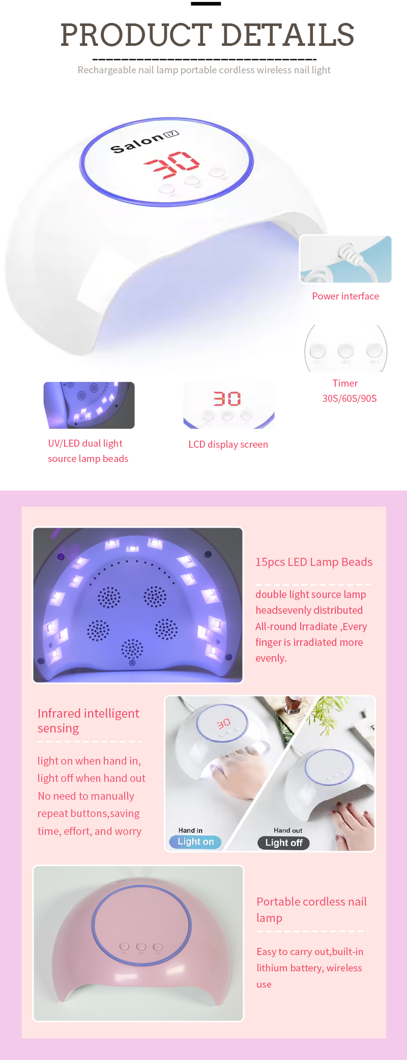 המוצר מבטיח אפילו ייבוש דבק ללא הצטמקות. מקורות האור הכפולים שלה מספקים חימום עדין למניעת שינוי צבע ידיים ומתח עיניים, המתאימים גם לידיים ולרגליים, ומספקות תוצאות ייבוש מהירות להפליא.