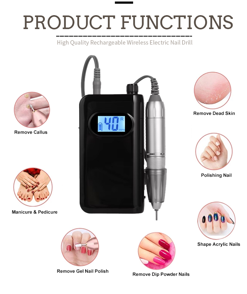 מאפייני מוצר ויישומים של קובץ הציפורניים החשמלי של K91 במהירות גבוהה 40,000 סל"ד להסרת לק להוצאת לק