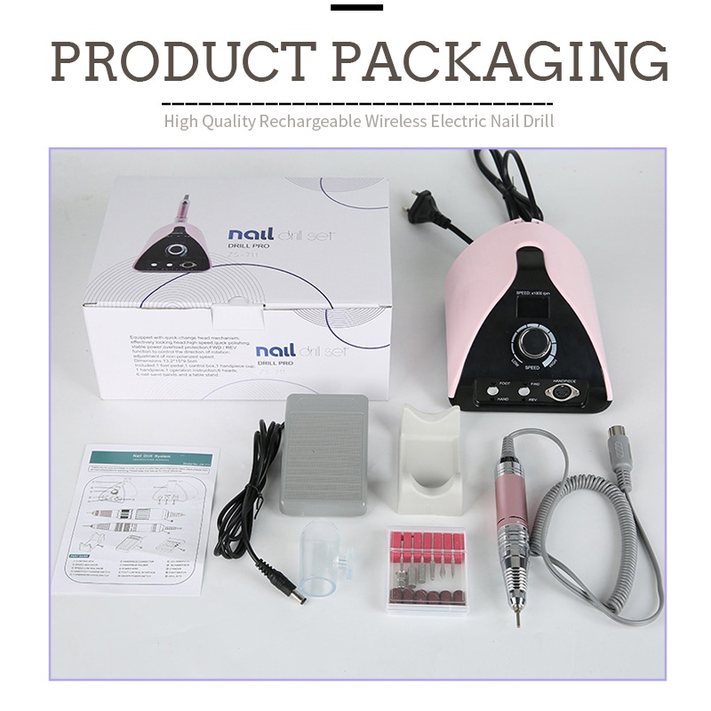 התוכן של מכונת מקדחת ציפורניים ניידת מקצועית זו 35,000 סל"ד כולל מוצר עט שיוף, כבל טעינה USB, מדריך הוראות למוצר, וקופסה קלת משקל וניידת.