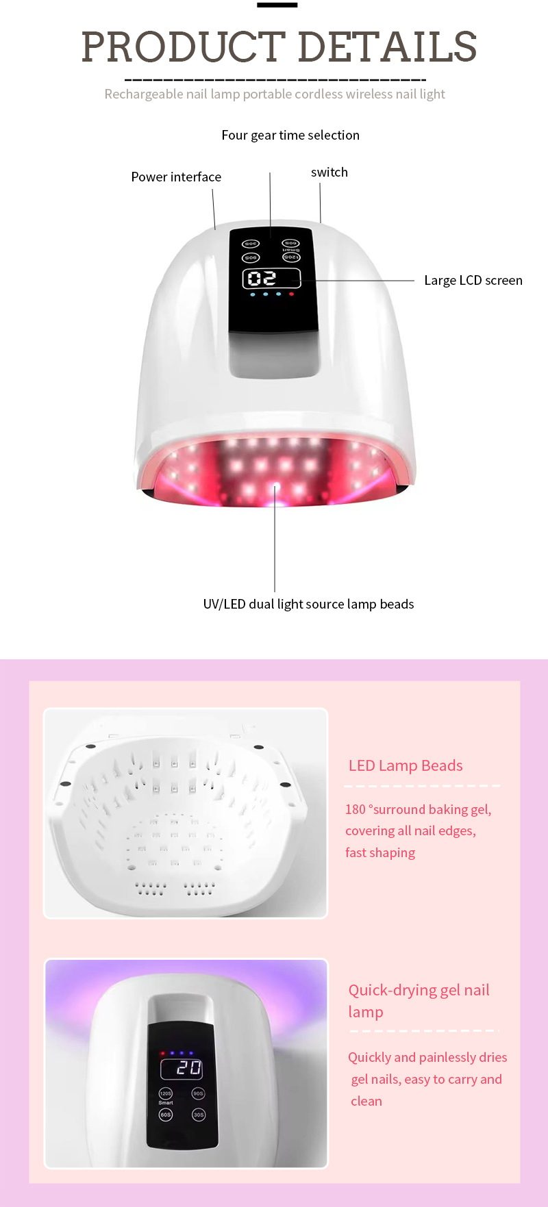 • נורות LED חזקות בעוצמה גבוהה, ג'ל ריפוי מהיר בשנות העשרים
