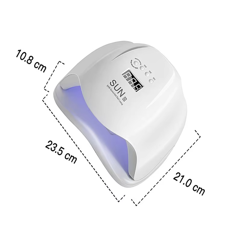 מנורת ציפורניים ג'ל ייבוש מהירה באורך 235 מ"מ, רוחב 210 מ"מ וגובה של 108 מ"מ, עם קיבולת גדולה ויכולת שימוש בכפות הידיים והרגליים, וזה מאוד נוח.