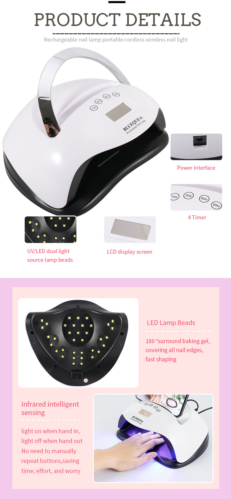 • נורות LED חזקות בעוצמה גבוהה, ג'ל ריפוי מהיר בשנות העשרים