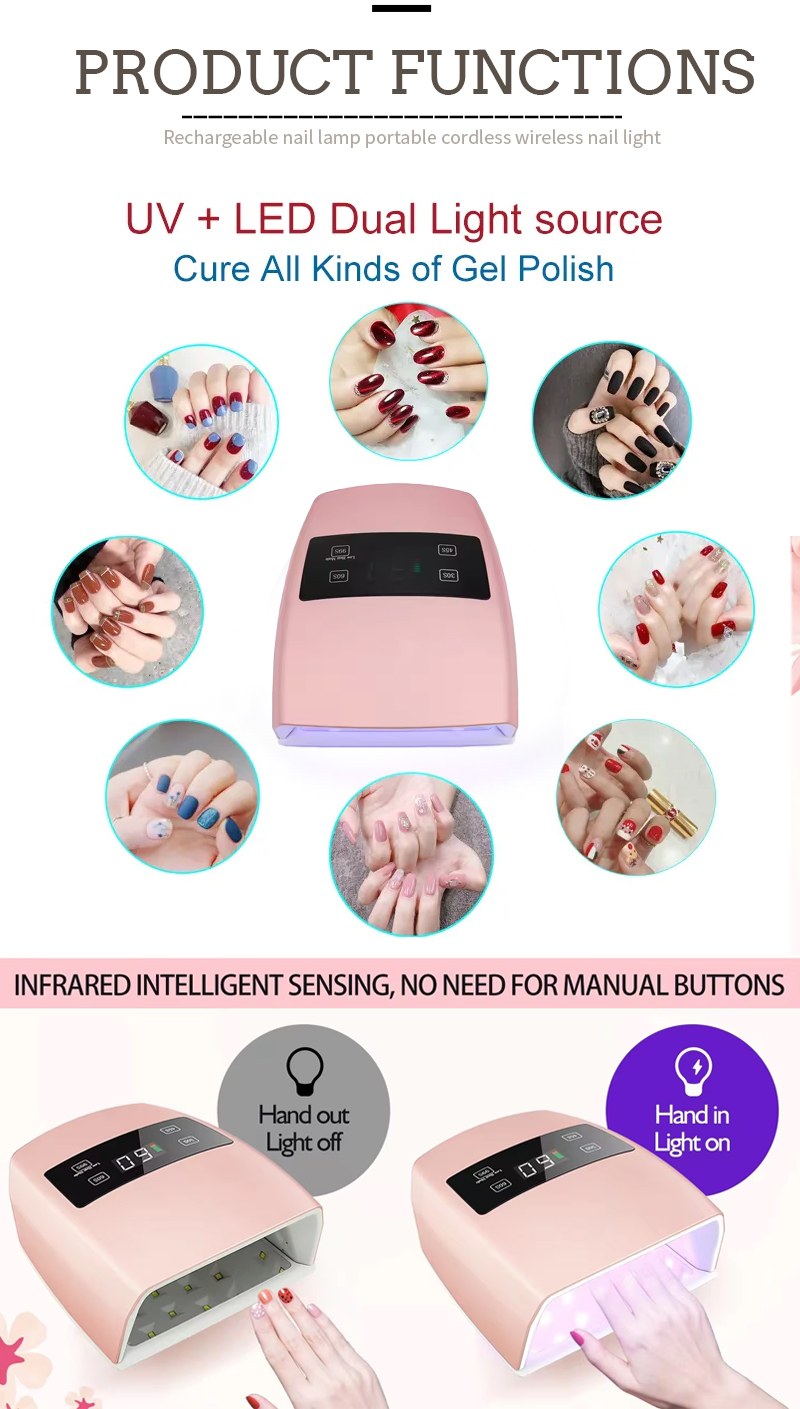 המוצר מבטיח ייבוש אחיד של הדבק ללא התכווצות. מקורות האור הכפולים שלו מספקים חימום עדין למניעת שינוי צבע הידיים ומאמץ בעיניים, מתאים הן לידיים והן לרגליים, ומספק תוצאות ייבוש מהירות להפליא.