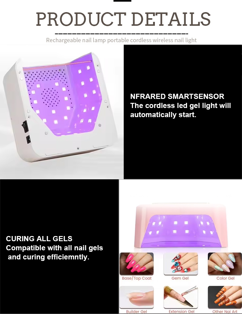 מנורת ייבוש הציפורניים המרובעת מבטיחה ייבוש אחיד של הדבק ללא התכווצות. מקורות האור הכפולים שלו מספקים חימום עדין למניעת שינוי צבע הידיים ומאמץ בעיניים, מתאים הן לידיים והן לרגליים, ומספק תוצאות ייבוש מהירות להפליא.