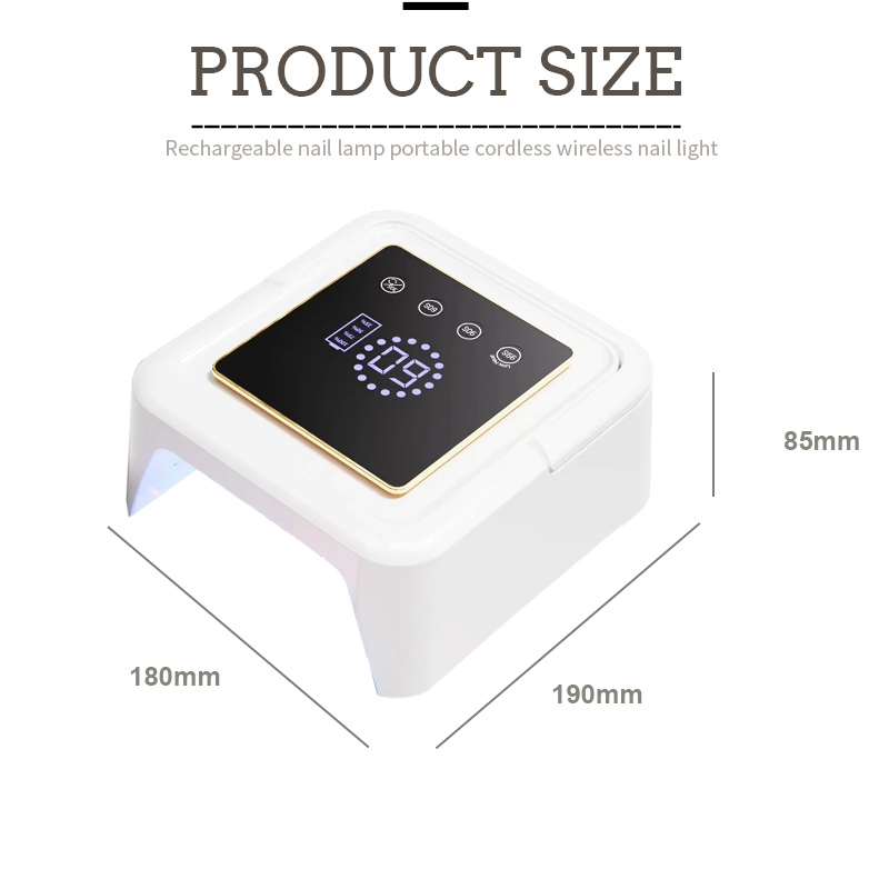 מידות מנורת ייבוש הציפורניים המרובעות הן 180 מ"מ אורך, 190 מ"מ רוחב ו-85 מ"מ גובה, עם קיבולת גדולה ויכולת שימוש בכפות הידיים והרגליים, וזה מאוד נוח.