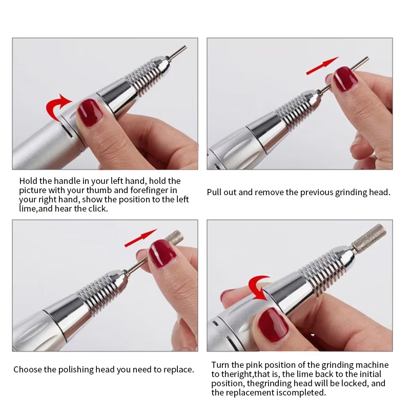 מקדחה חשמלית אלחוטית זו לציפורניים עם 35,000 סל"ד החלפת שיטת פעולת מקדחה, כלומר תקע ושולף, קל ונוח, ניתן להשתמש בהחלפה לאחר השלמתו.